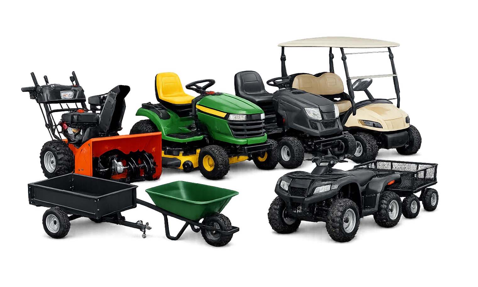 - udstyr til have- og ejendomsvedligeholdelse (f.eks. fejemaskiner, spredere og mindre transportudstyr)